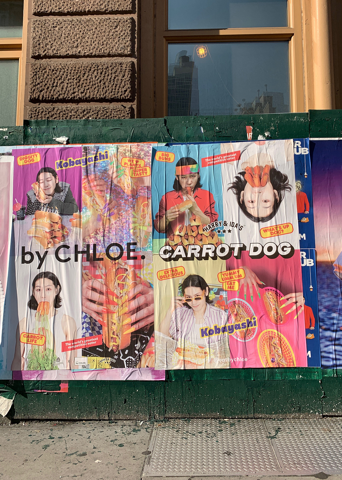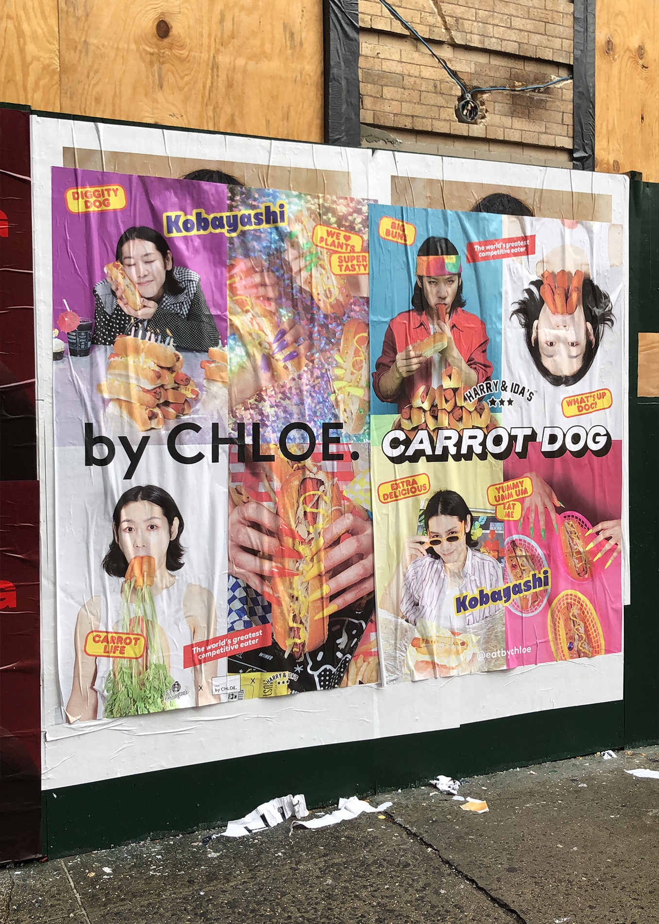 100% Vegan carrot hot dog campaign featuring six-time champion of Nathan's Hot Dog Eating Contest, Kobayashi. [my role: art direction & design]