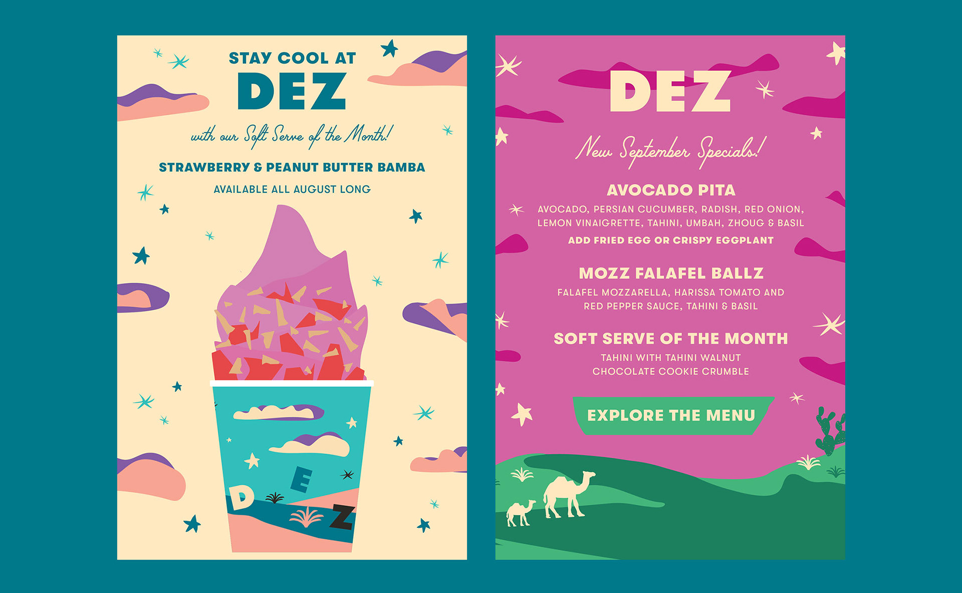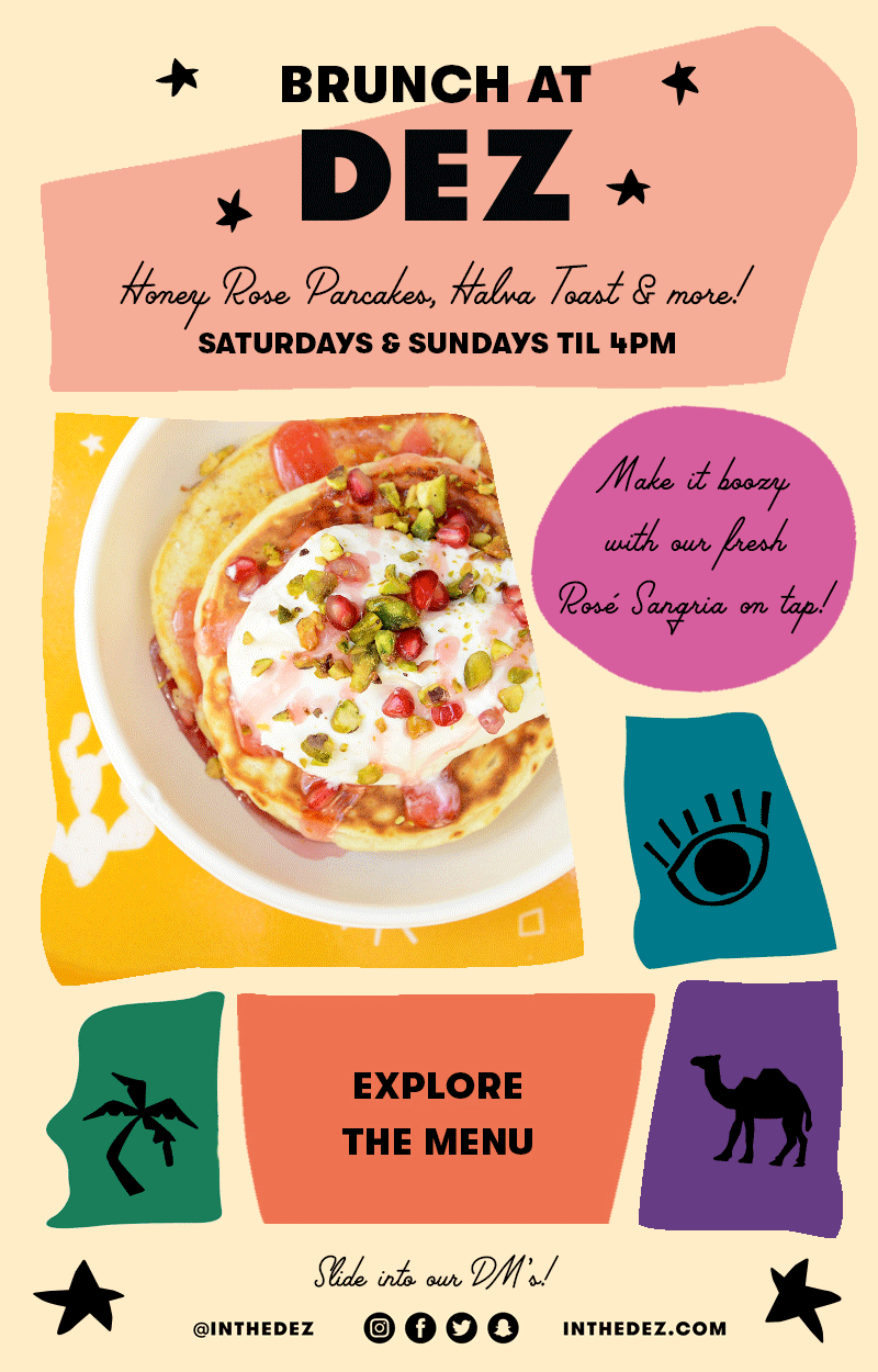 Dez is a Middle Eastern fast-casual restaurant with a modern twist. Located in the heart of Soho, Nolita, with an eclectic menu from chef and TV personality Eden Grinsphan. [my role: design]